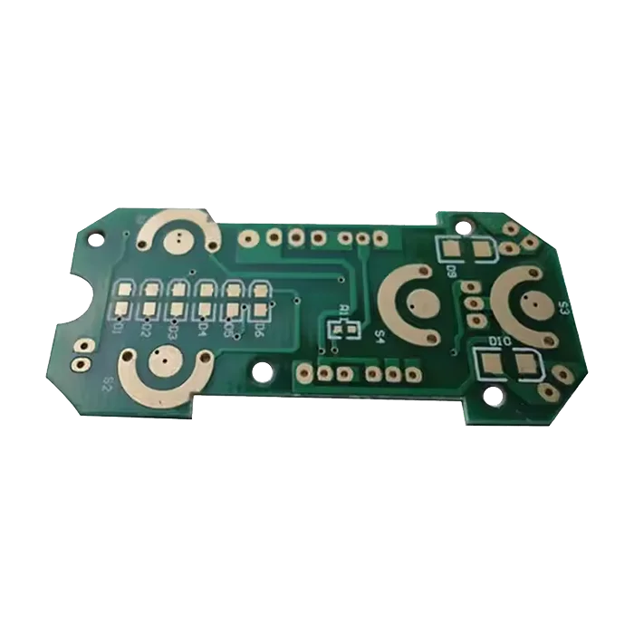 Os dispositivos eletrónicos geram muito calor quando funcionam durante muito tempo. Para garantir o funcionamento estável do equipamento, as placas de circuito impresso precisam de ser feitas de materiais fiáveis. Esta placa de circuito impresso de dupla camada FR4 94V0 utiliza material FR4, que possui excelentes propriedades retardantes de chama e resistência mecânica. O FR-4 é um material retardador de chamas, o que significa que a resina pode se auto-extinguir após a queima para evitar a propagação do fogo. Ele pode minimizar eficazmente as perdas e acidentes de bens e pessoas.